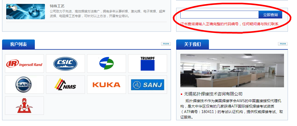 無(wú)錫拓?fù)浜附蛹夹g(shù)咨詢有限公司作為美國(guó)焊接學(xué)會(huì)AWS的中國(guó)直接授權(quán)代理機(jī)構(gòu),是大中華區(qū)僅有的幾家獲得ATF國(guó)際授權(quán)焊接考試資質(zhì)(ATF編號(hào):180411)的考試認(rèn)證機(jī)構(gòu),提供權(quán)威焊接考試、取證服務(wù)。考試資質(zhì)(ATF編號(hào):180411)的考試認(rèn)證機(jī)構(gòu),提供權(quán)威焊接考試、取證服務(wù)。